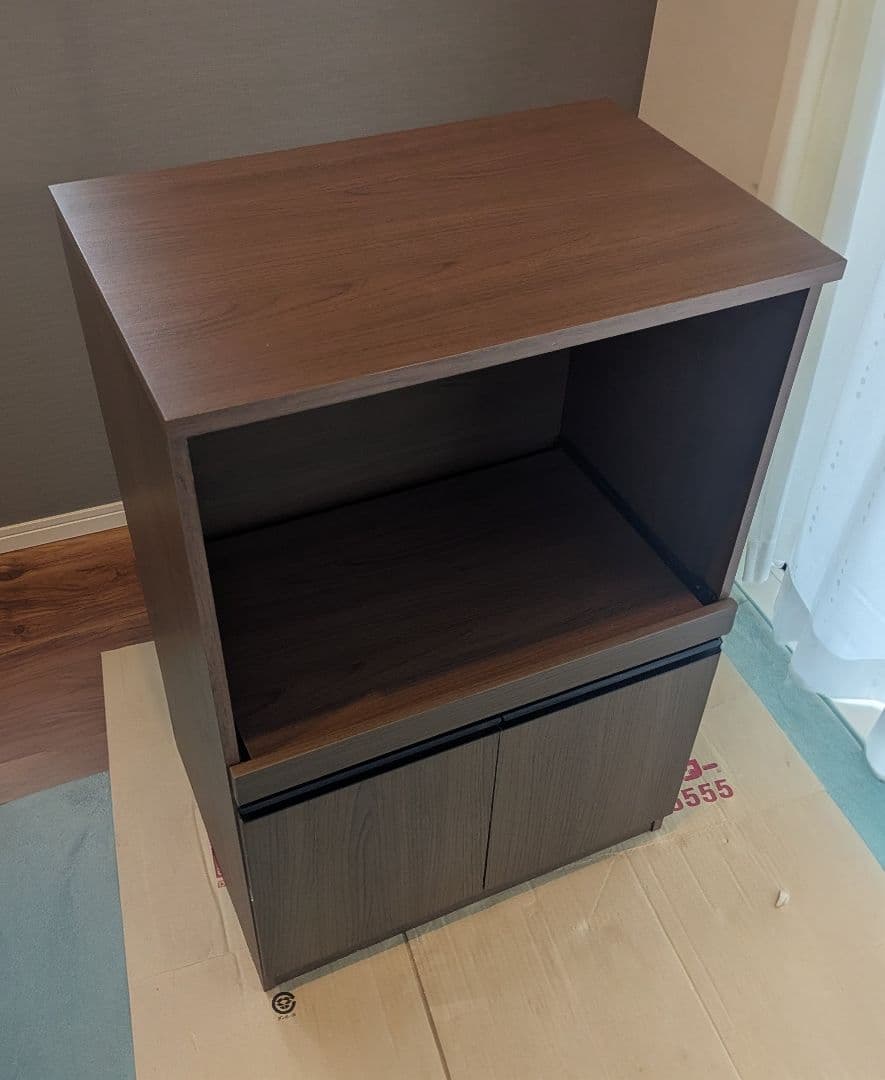 - 引っ越しをするのでレンジ台をさがしていましたが一目惚れして値段もお手頃だったので食器棚とセットで購入しました〓みなさんレビューにかいてあった通り組み立てが大変で電動ドライバーと普通のドライバーをつかいましたが1時間半かかりました〓 でも出来上がりは想像以上によく値段以上にみえます〓 いい買い物ができました〓