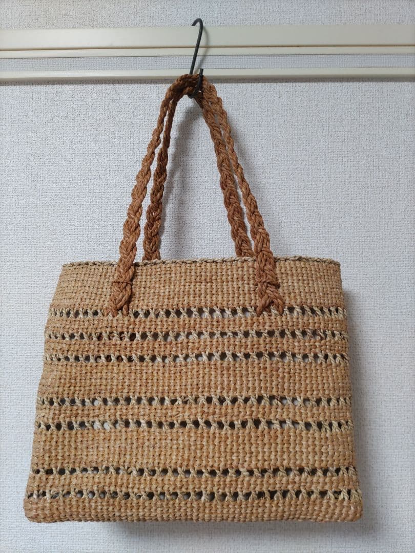 天然素材を使用したブラウンのかごバッグ、編み込みデザインでスタイリッシュ。- 素材: 天然素材(詳しくないのでわかりませんがおそらく葡萄だと思います。)確かではないので気になる方は購入おやめください- 色: ブラウン- ハンドル: 2本のハンドル付き- デザイン: 編み込みデザインご覧いただきありがとうございます。