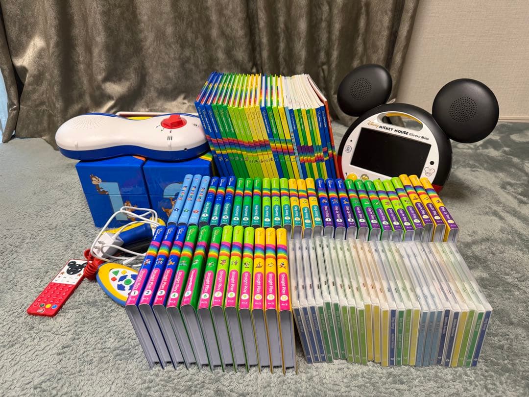 2017年に95万年で購入DWEディズニー英語システムフルセットです♪気になっていたけれど、お値段が高くて決めきれなかった方、この機会に是非試してみてください♡・「Sing Along!」「Play Along!」DVD、CD共に最初の数枚以外は、ほぼ未使用品となります。・本もほぼ未使用で開いていないものが多いです。⭐︎ マグネットアルファベットは数個、磁石のハズレがあります。⭐︎ 引き出しの中身もほぼ未開封ですが、絵の具など長期保存により、中身が使用できるかは分からないものもあります。⭐︎ 棚や引き出しは使用感があります。 棚は分解しての発送させていただきます。※ 使用していないものが多いですが、中には使用感があるものもございます。 中古品としてご理解いただける方のみご検討下さい。