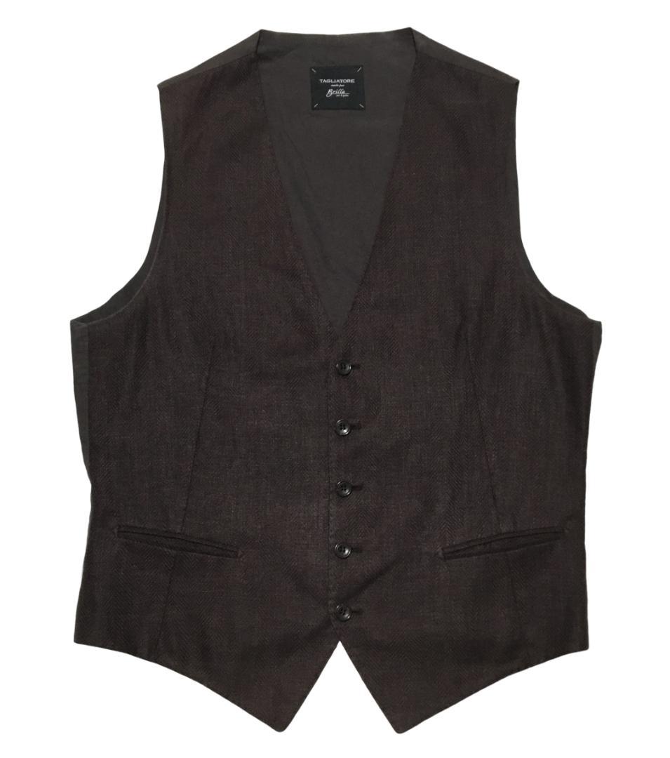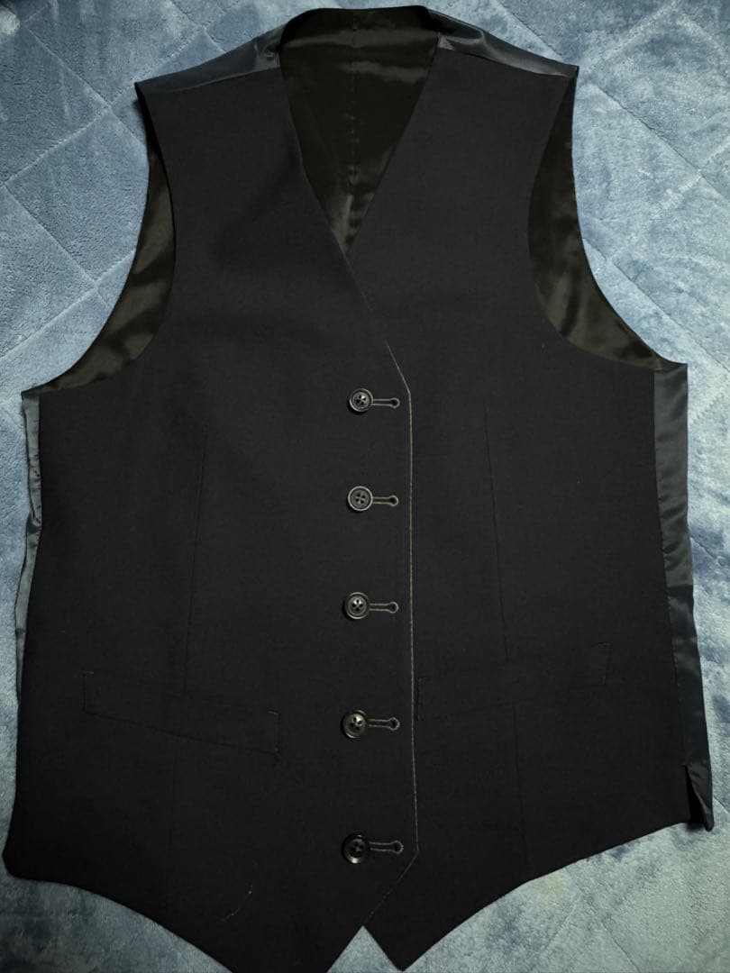 - やっぱり襟付きベストはかっこいいです。若い人でスリーピースのスーツを着ている人は少なく、注目の的。ベストを着るだけで人間の中身はどうであれ仕事ができそうな、バリバリ稼いでいそうな人に見えてしまうから不思議。ブラックベースで軽くストライプが入っているのでいろいろなスーツに合います。