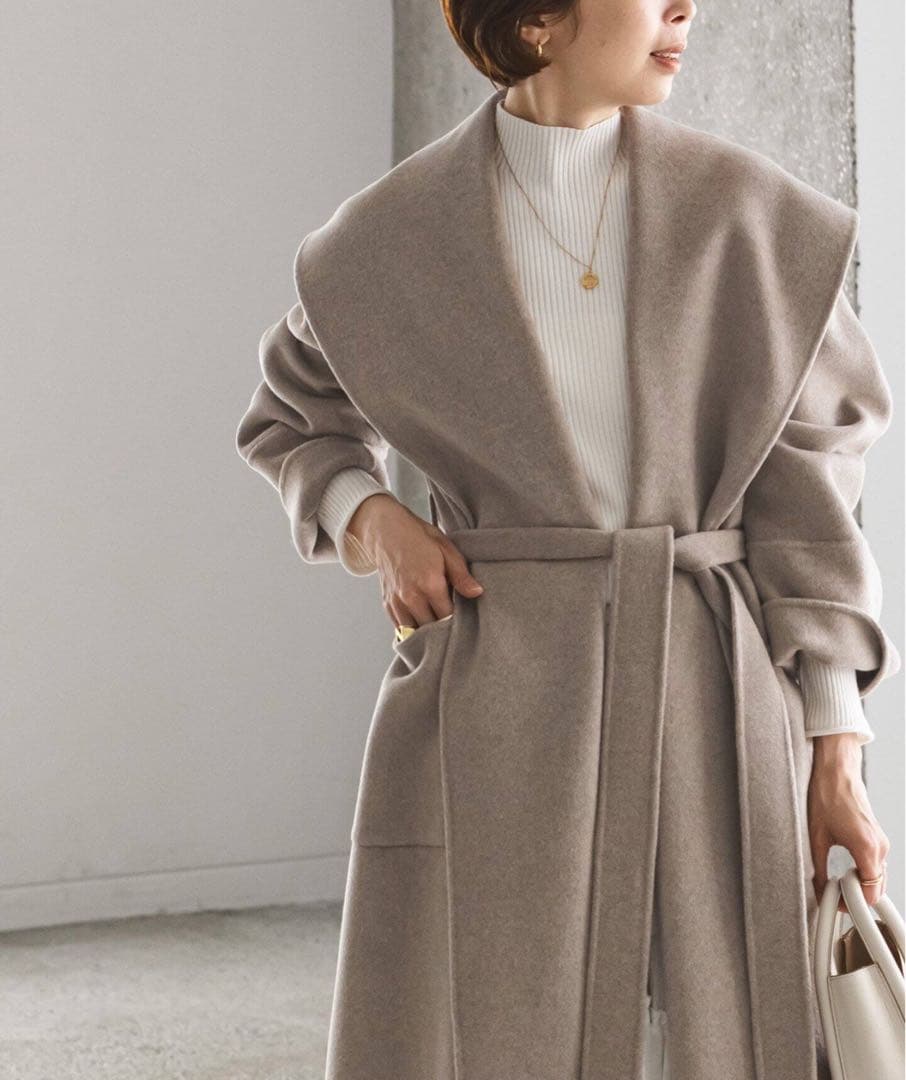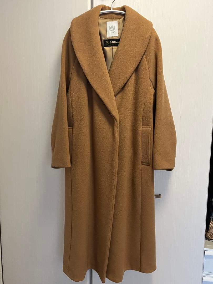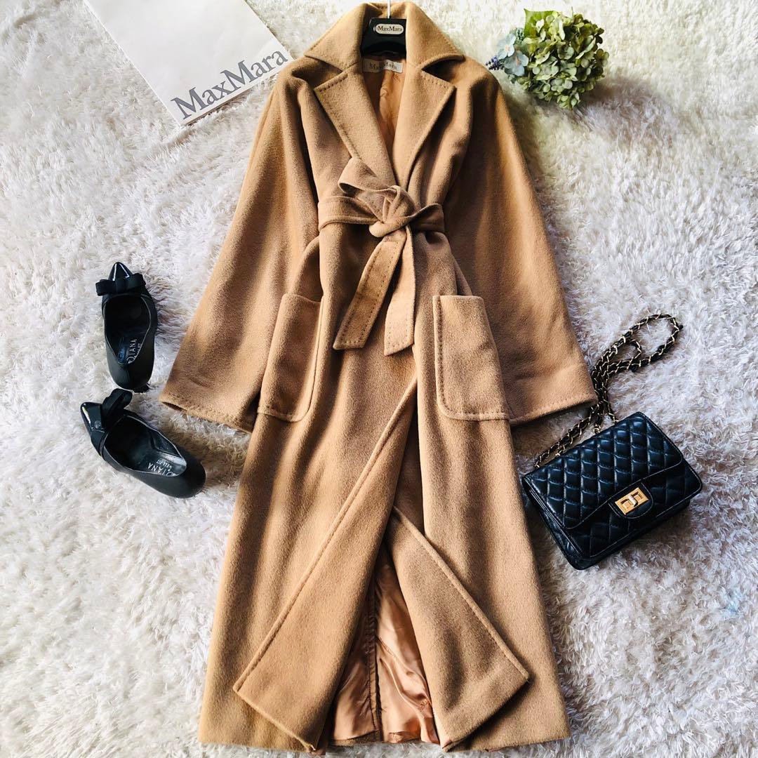 新品タグ付き‼️【マックスマーラ】38上品なノーカラーコートベージュカシミヤ 極美品】マックスマーラ ミンク キャメル 100% コート ショールカラー